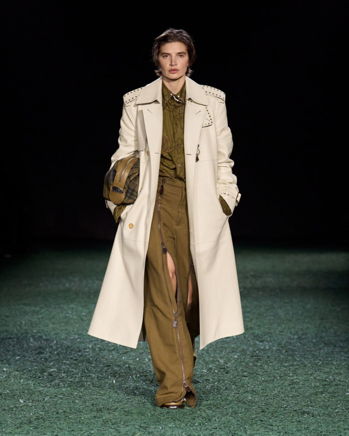 “Burberry icons are evolved through shape and fabric, evoking a feeling of warmth, protection and outdoorsy elegance. Inspired by the landscapes and people of the UK and Ireland”. The message of the show was clear, when you are a UK icon, like Burberry, you need to focus on keeping your clients warm, as the winters here are windy, rainy and snowy. That’s why in his collection Lee focused mainly on the outerwear: shearling coats, cozy parkas, duffle coats and field jackets were omnipresent on the runway. And of course there were trenches from a classic checked one to more unusual moleskin and leather ones.