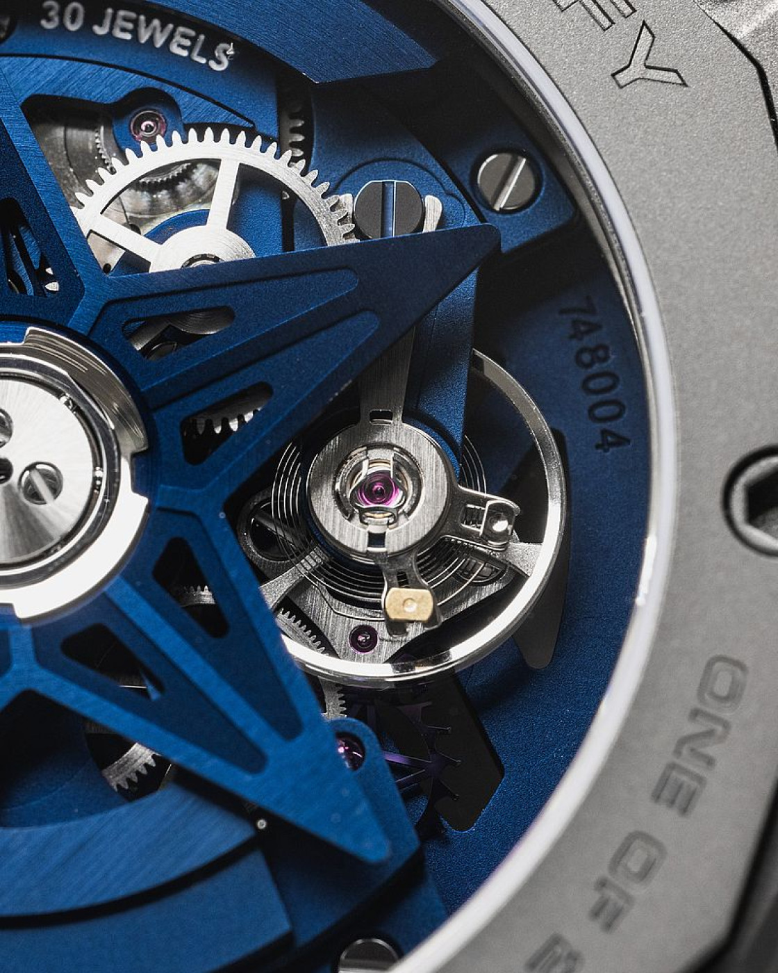 Finishes: special oscillating weight blue with satined finishing and blue main plate