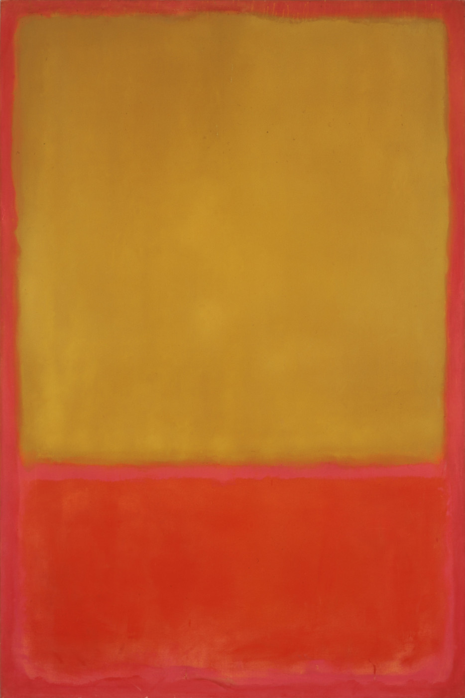 Gradually, these decrease in number and the spatial organization of his painting evolves rapidly towards Rothko’s “classic” works of the 1950s, where rectangular shapes overlap according to a binary or ternary rhythm, characterized by shades of yellow, red, ochre, orange, but also blue, white…